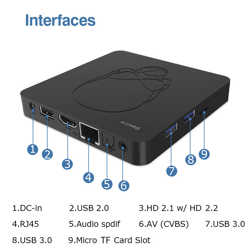 Equipped with an 8G card, a built-in CoreELEC system supports the KODI function, you can watch TV movies for free, and play videos smoothly