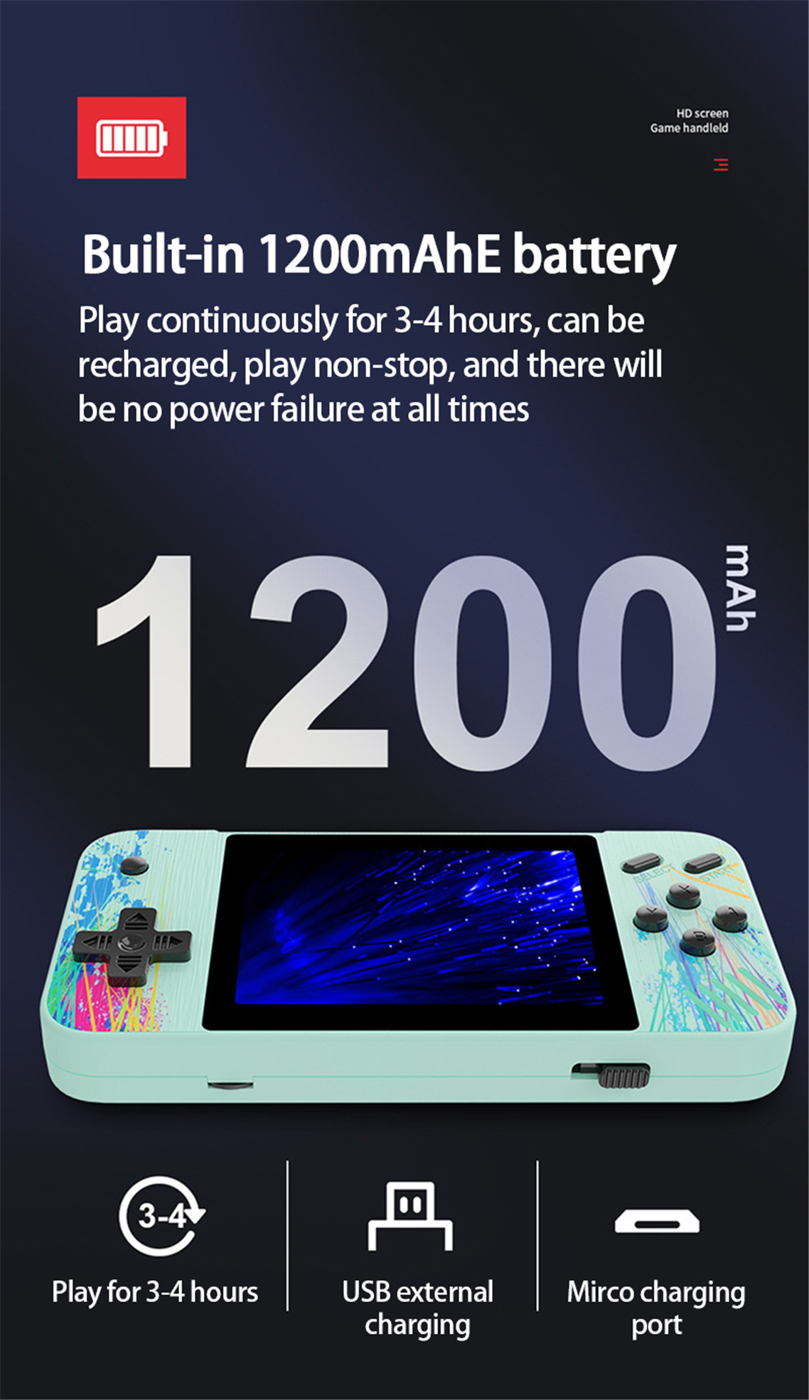 • Built-in 1200mAh lithium battery, can play continuously for 3-4 hours, can be recharged, and play without power failure.