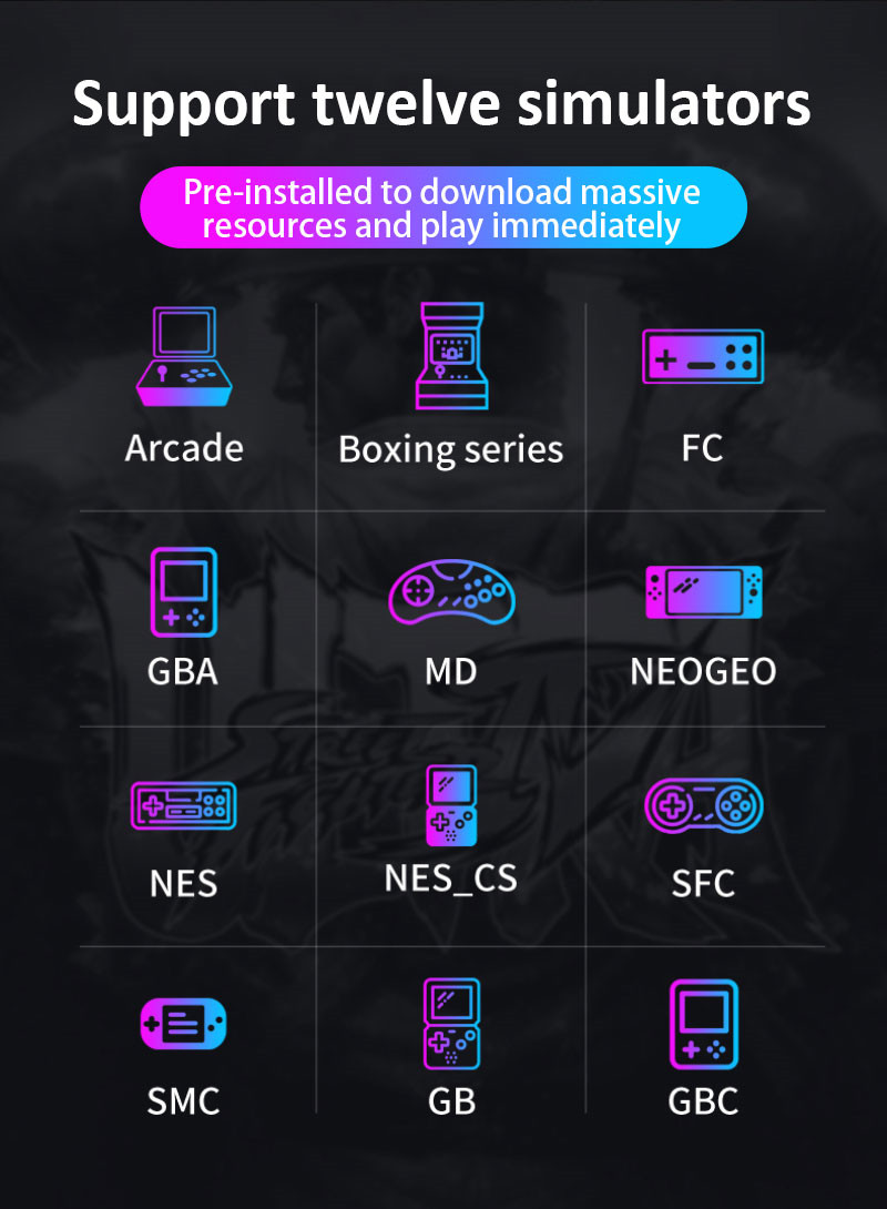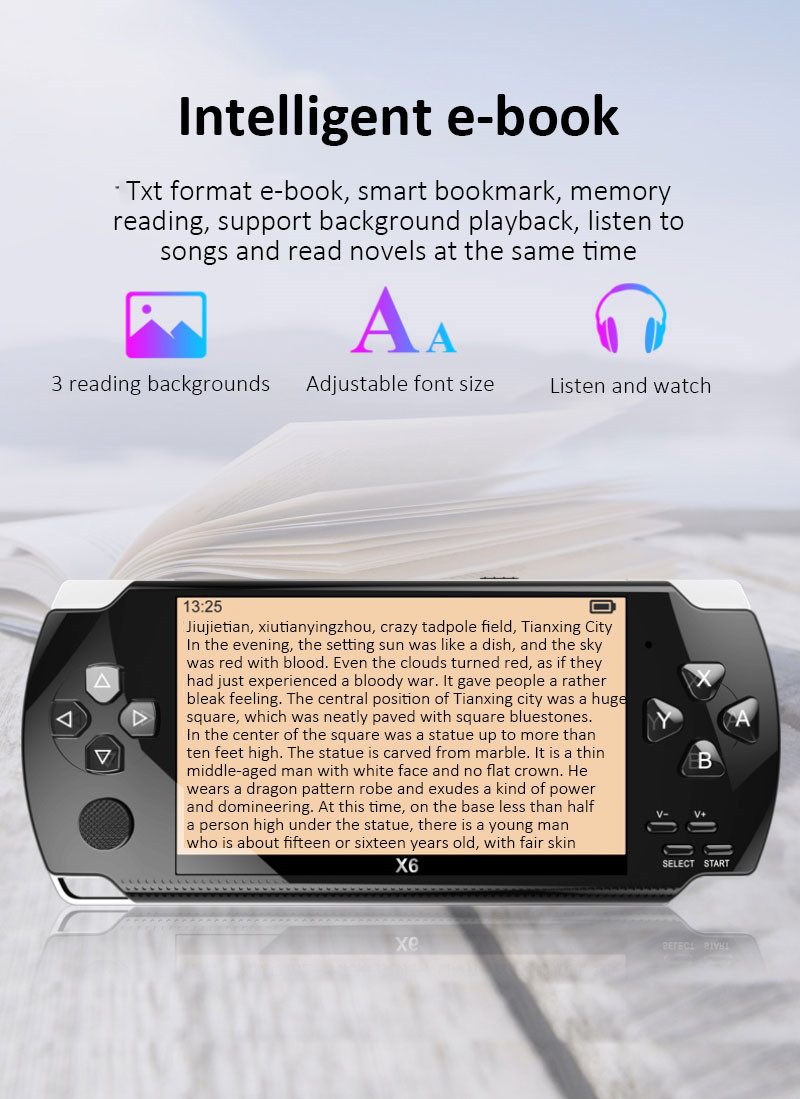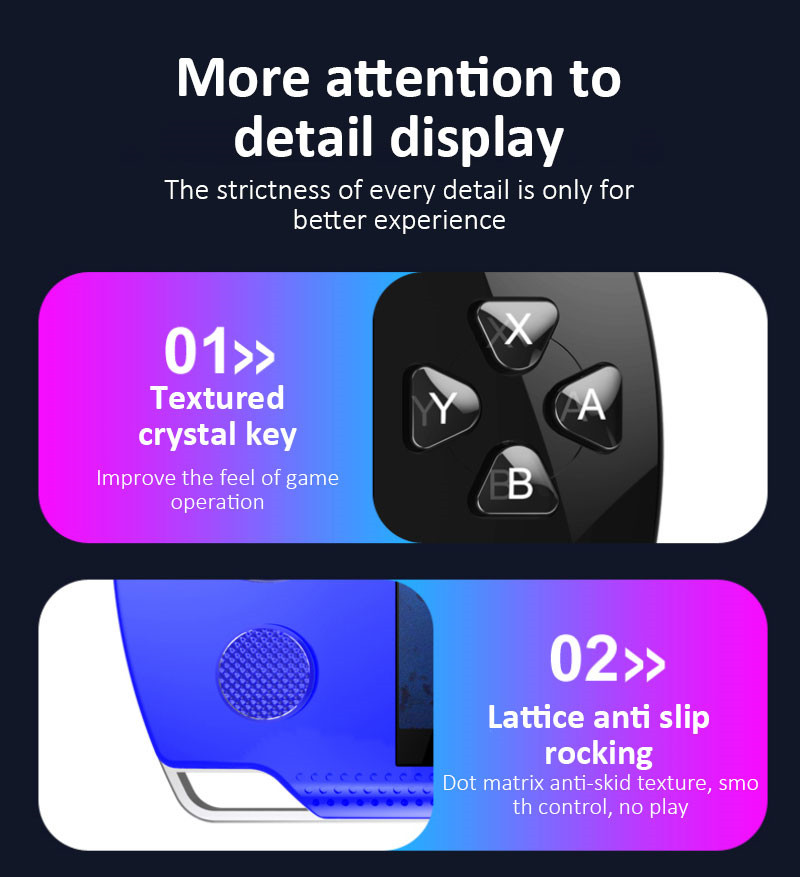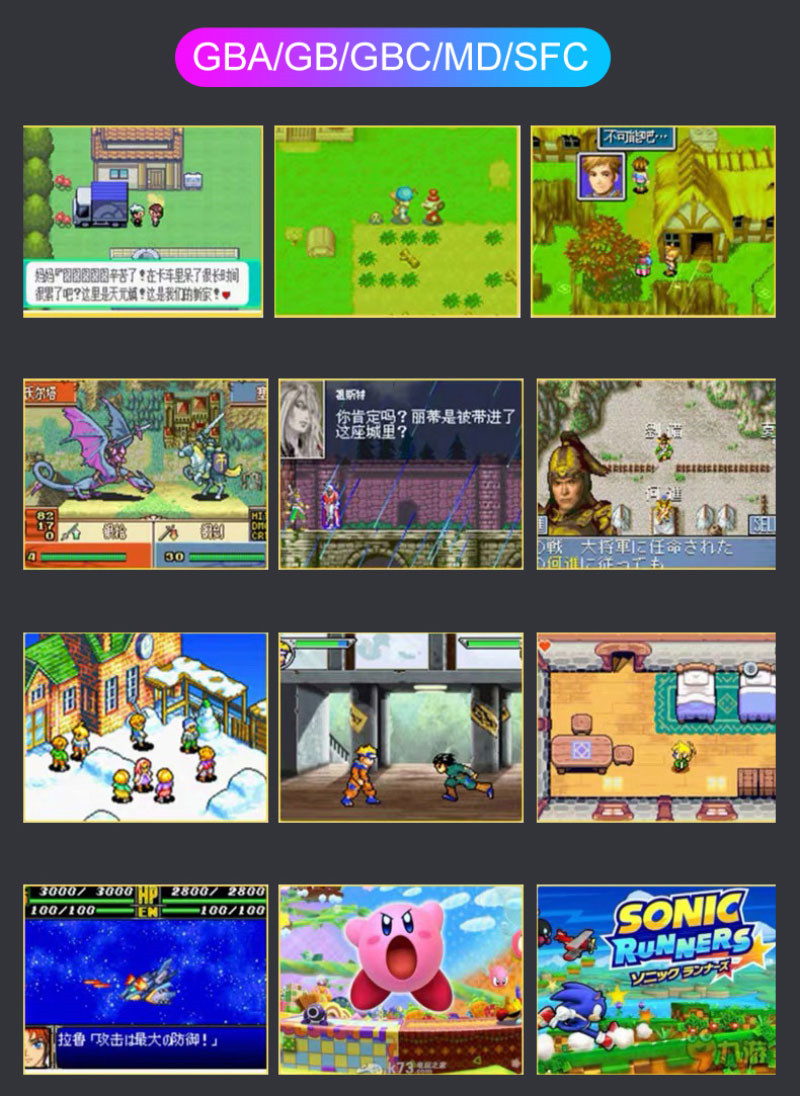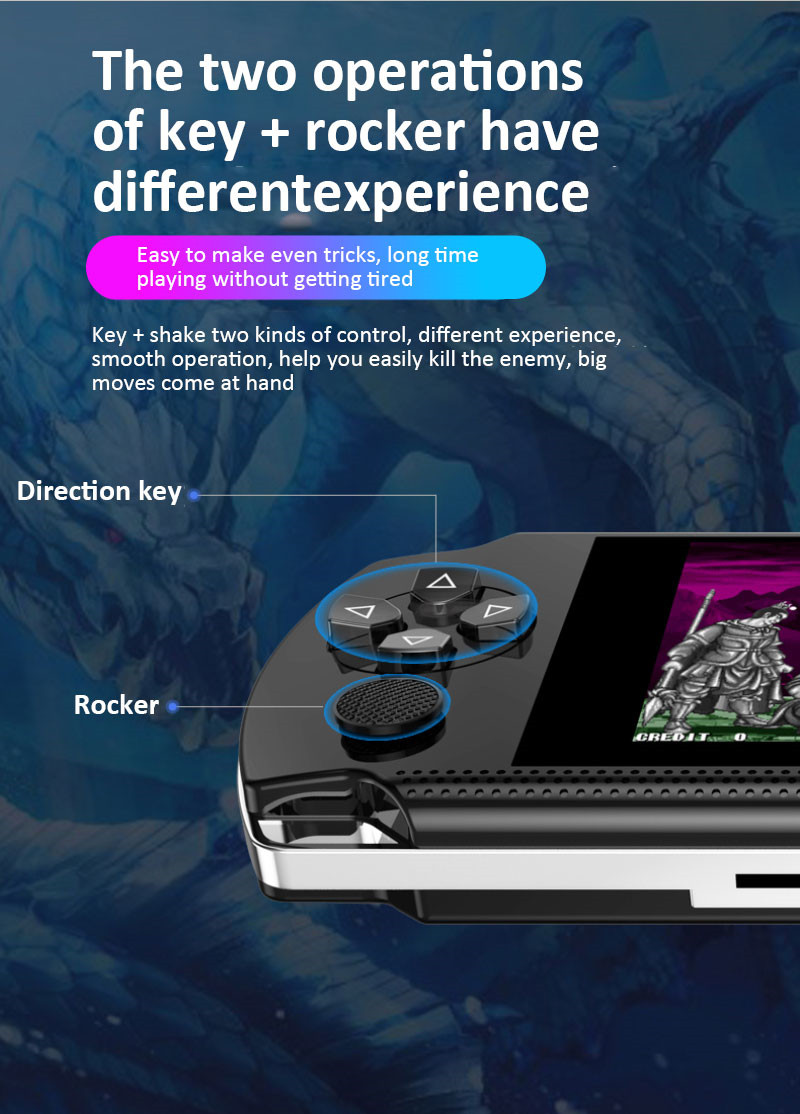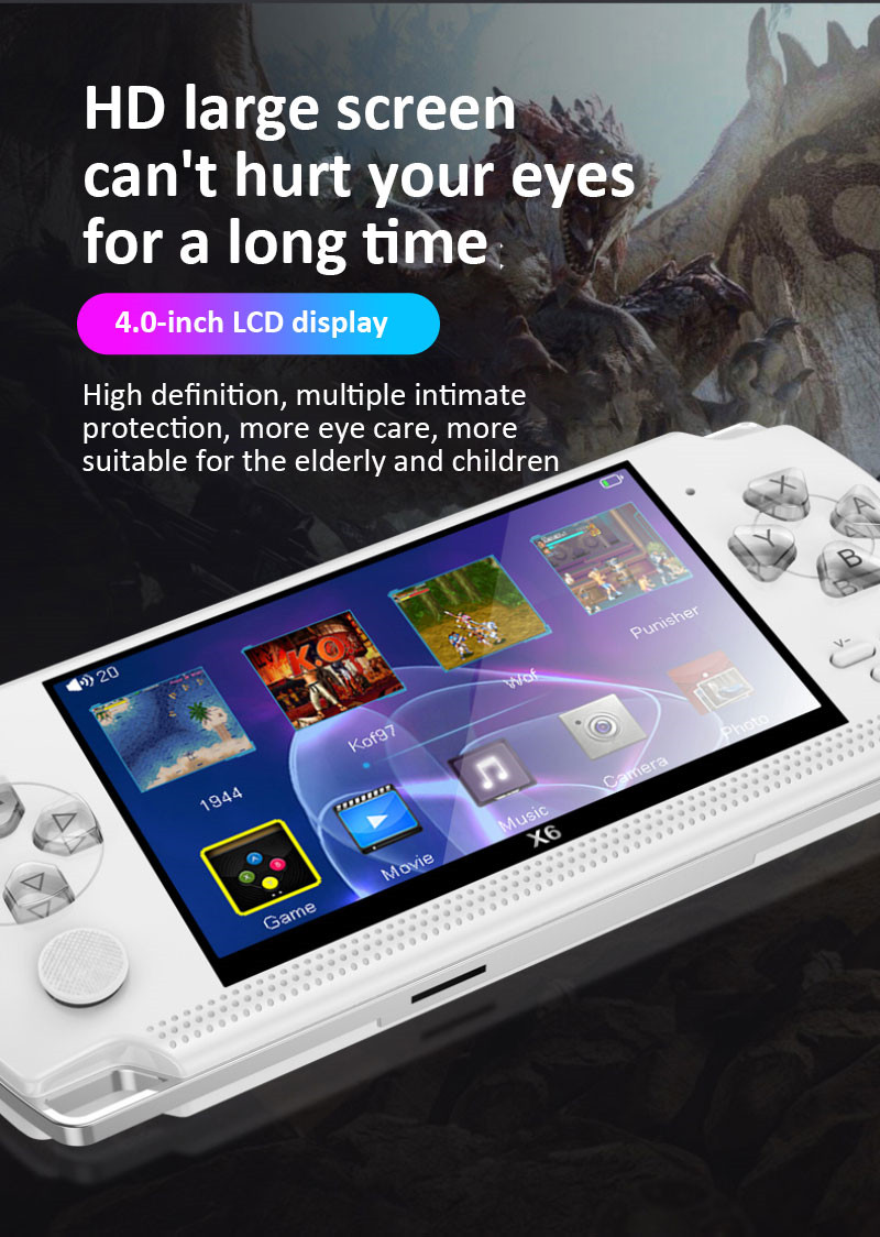 4.0 inch classic game console, supports multiple emulators, a game can be equivalent to many previous game consoles, users can play many types. The game allows you to easily retrieve your childhood memories. It is very suitable for travel, indoor, outdoor , leisure use, and also suitable as a gift.